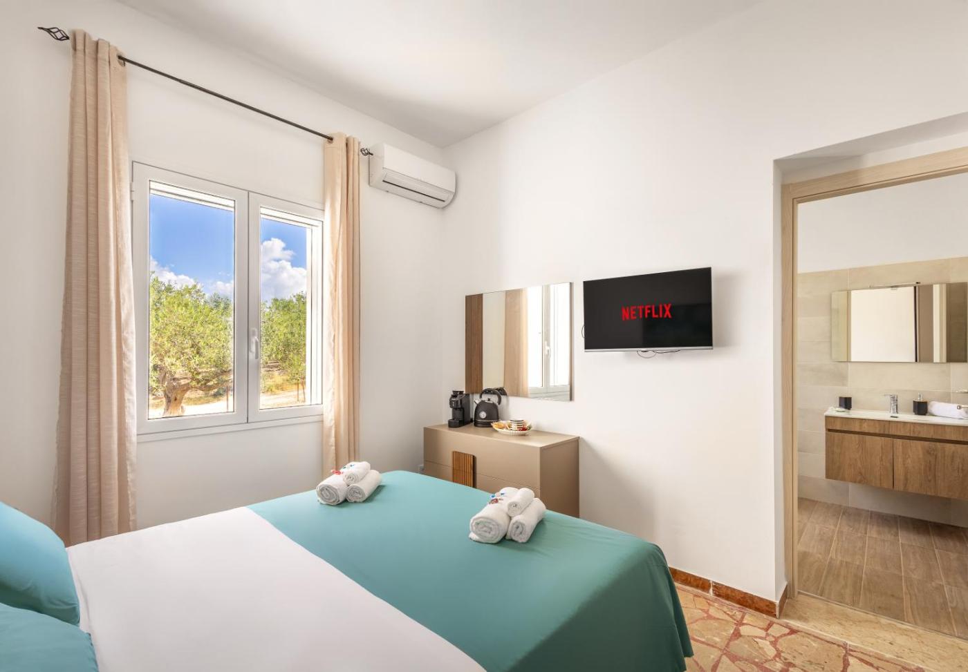 Each unit has a patio offering sea views, a satellite flat-screen TV, a dining area, a well-fitted kitchen and a private bathroom with walk-in shower, a hair dryer and free toiletries. An oven, a microwave and fridge are also offered, as well as a coffee machine and a kettle. Guests can dine in an outdoor dining area at the country house.