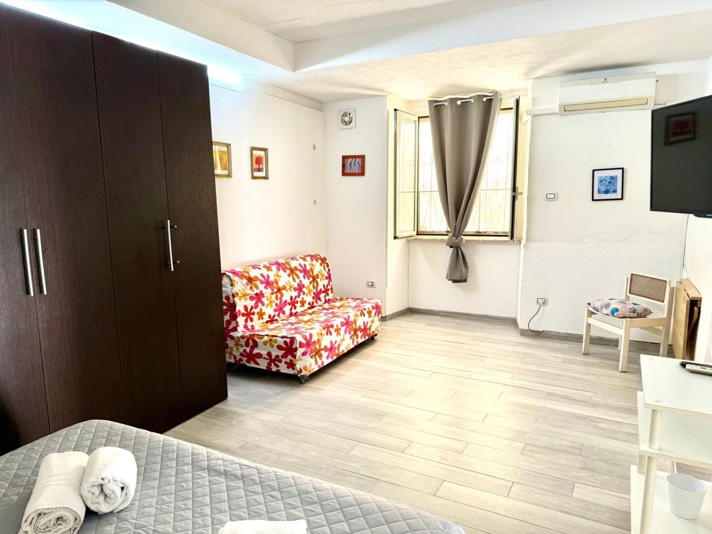 Studio Apartment with One Double Bed. The air-conditioned apartment has 1 bedroom, 1 bathroom and a kitchen. The apartments kitchen is available for cooking and storing food. This apartment features a flat-screen TV. The unit has 1 bed. ;